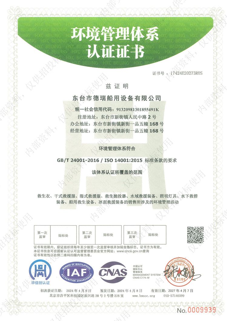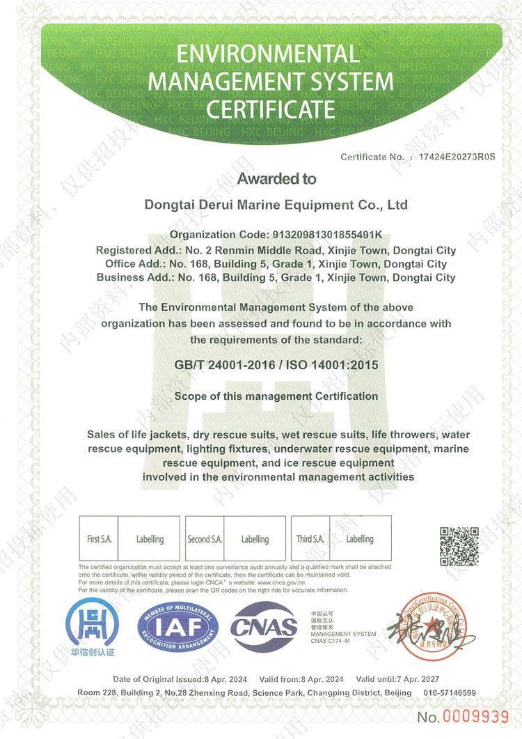 環(huán)境管理體系認(rèn)證證書(shū)(英文版)
